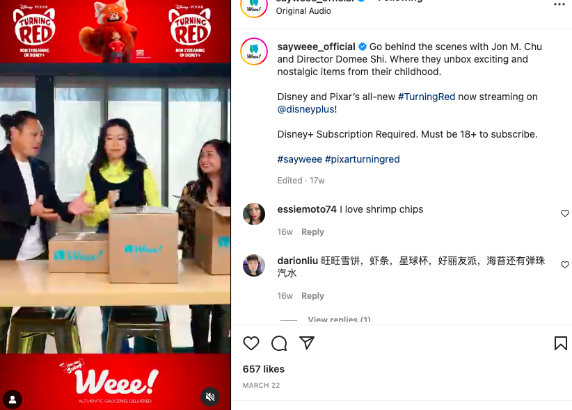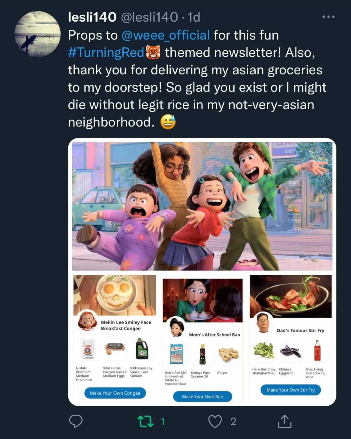 Weee! confirmed target audience alignment to drive brand consideration by celebrating the release of their new film Turning Red, with Landing Page and select paid assets.
